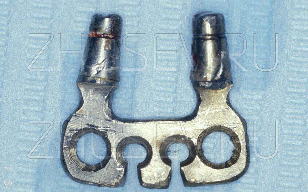 Абсолютно кустарный, пластиночный имплантат. На нем даже видны следы механической обработки.
