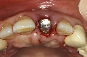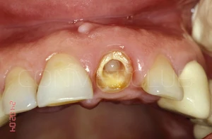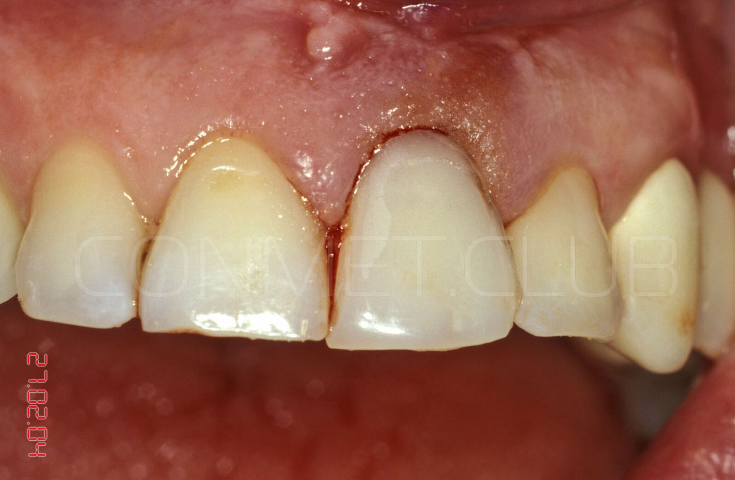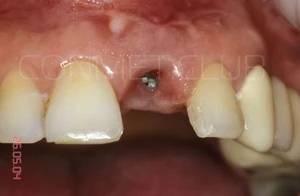 Операция немедленной имплантации была произведена 27.02.2004 года непосредственно после экстракции зуба 21 из-за невозможности дальнейшего лечения данного зуба (две вертикальные трещины корня).