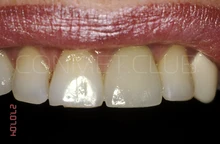 Контрольное фото через 6 недель после окончательного протезирования. Почти идеальная сохранность межзубных сосочков.