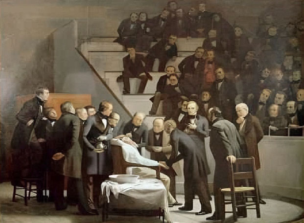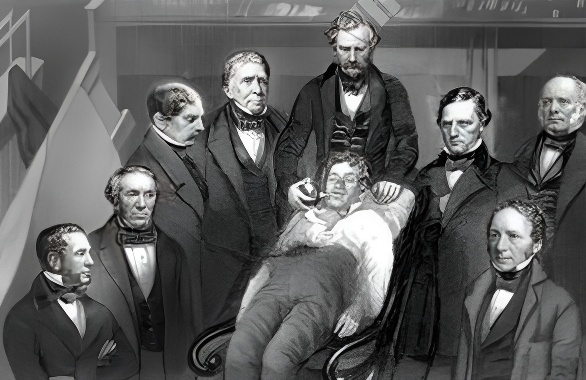 В 1846 году в клинике Бостона Мортон провел первый в мире наркоз. В качестве анестетика был использован диэтиловый эфир. Первая операция, проведенная под наркозом, была удалением подчелюстной опухоли.